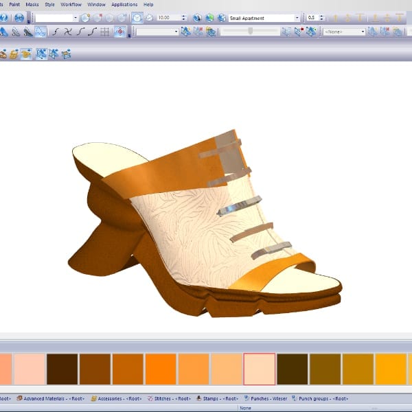 › suport complet pentru aplicarea materialelor și a texturilor pe tălpi și tocuri